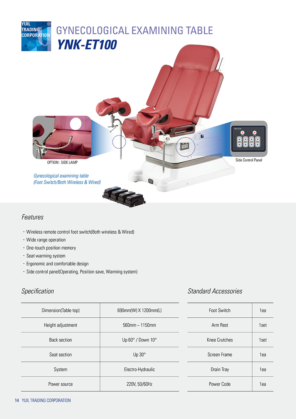 - Wireless remote control foot switch(Both wireless & Wired) - Wide range operation - One-touch position memory - Seat warming system - Ergonomic and comfortable design - Side control panel(Operating, Position save, Warming system)